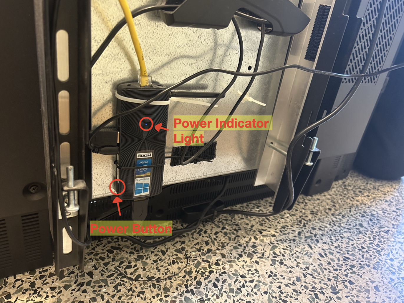 This Kiosk computer is an Intel Compute Stick with only one USB port, so you will need to bring a USB hub (Brandon T. has one) to connect a keyboard and mouse to it.